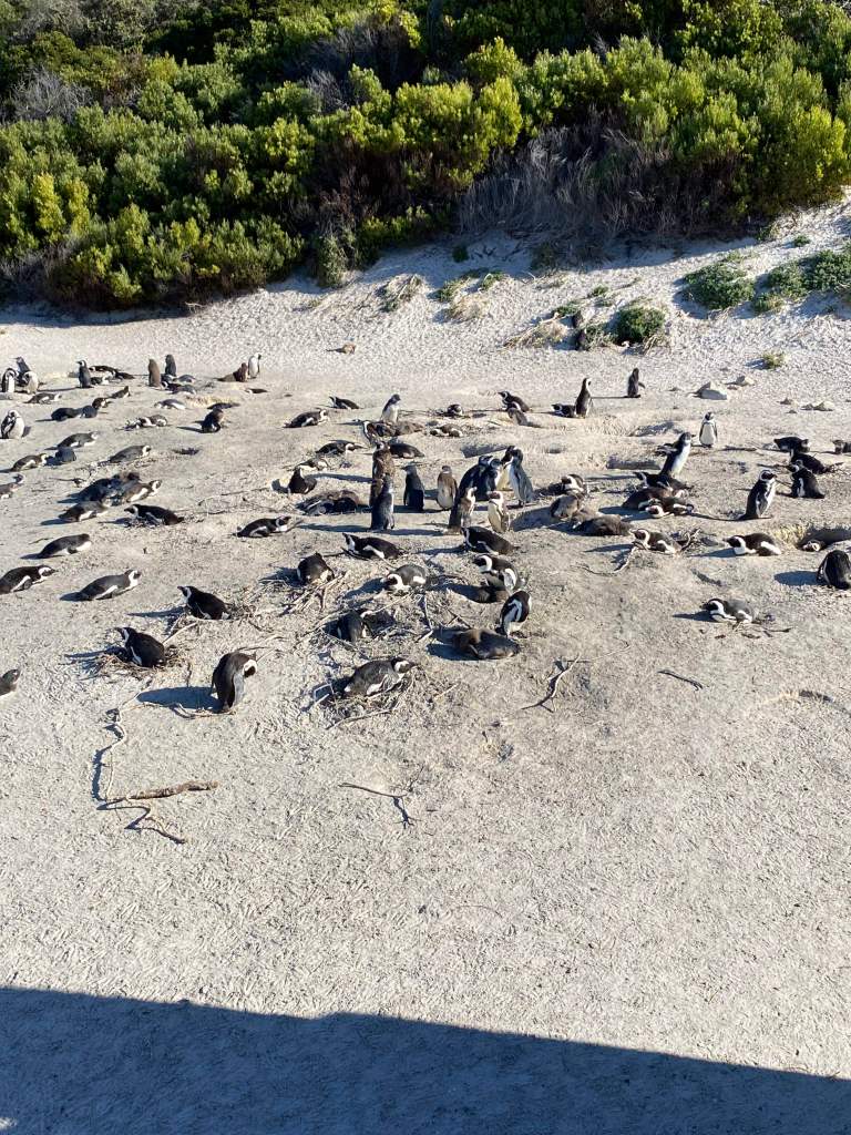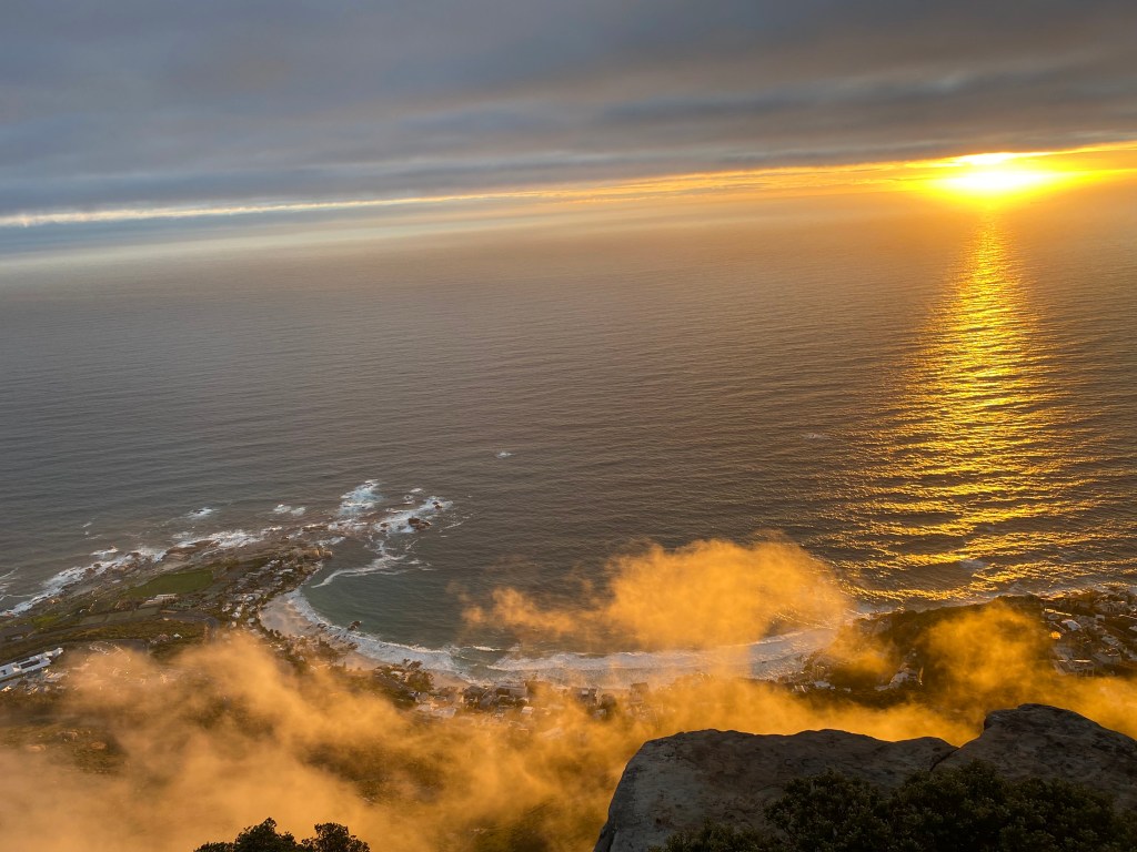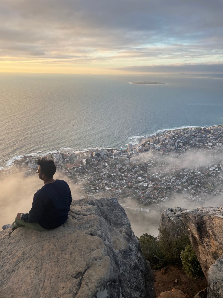The highlight of the trip was that evening, where we climbed Lion’s Head. It was advertised to us as an easy 1/1.5 hour hike that all American tourists do, but as we began to climb, we encountered staples, chains, and segments of vertical incline. It took us over 2 hours to finish the hike, and we were a group of moderately athletic 20-year-olds. It must be a hazing ritual because there is no way the average American tourist can hike that in under 90 minutes. The views when climbing up the mountain were absolutely gorgeous: the beach, other mountains, and the city were all laid out beneath us. We got to the top at right around sunset, which made the views absolutely breathtaking. After taking some flicks at the top (had to do one Eren Jeager style at the end of season 3), we began descending on the longer but less steep path (since a vertical decline did not sound appealing). It got dark quickly, which made things a little scary, but the views of the city lights were worth it. After the hike, we went to a “traditional” African restaurant (Mario’s African Place) for dinner, but it felt like a stereotype of actual Africans because the menu had lots of weird meat. I tried this worm-based dish, but it was really weird and so I just stuck to chicken. Before we went to bed that night, my clumsy self slipped and fell on the bathroom tile and got a Tom-and-Jerry style bump on my head.