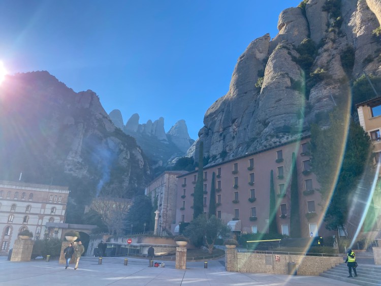 If you thought that was exhausting, buckle your seatbelts. We woke up early and headed to Montserrat via Metro, long-distance rail, and funicular. The hike in front of us was a 4-hour round trip, so we decided to grab a Spanish omelet sandwich and a curd-filled pastry, which were delicious (but a little heavy, which will prove to be problematic in a bit). About 1200 stairs stood between us and the top of the mountain. That journey proved to be quite grueling, and I could barely get out a “Buen Día” to passersby between breaths. The ends did justify the means (shoutout to Niccolò Machiavelli) because we were rewarded with an amazing view of the Spanish landscape, complete with snowcapped mountains, the sea in the distance, and a vast plain dotted with trees and lakes in between. I even put my rock climbing skills to the test and climbed an 8-foot wall (I know, riveting) to snag some even better pictures. After a quick climb down, we saw the main basilica with its beautiful statues and architecture, and we stopped by the same cafe to refuel. I realized we missed the chapel, so we went back to see it (worth it) before getting on the funicular down and train back to BarTHelona. Our train stop was Plaça d’Espanya, which was home to Las Arenas, an old bullring-turned-shopping-mall with rooftop restaurants. With the Museu Nacional d’Art de Catalunya (Catalonian Art Museum) and a beautiful sunset as a backdrop, we had a nice tapas rooftop dinner. When we got back to Aparto at night, we had food trucks where I could practice my broken Spanish and be rewarded with fries. Overall, an adventurous but amazing day punctuated with some Mariokart to end the night.