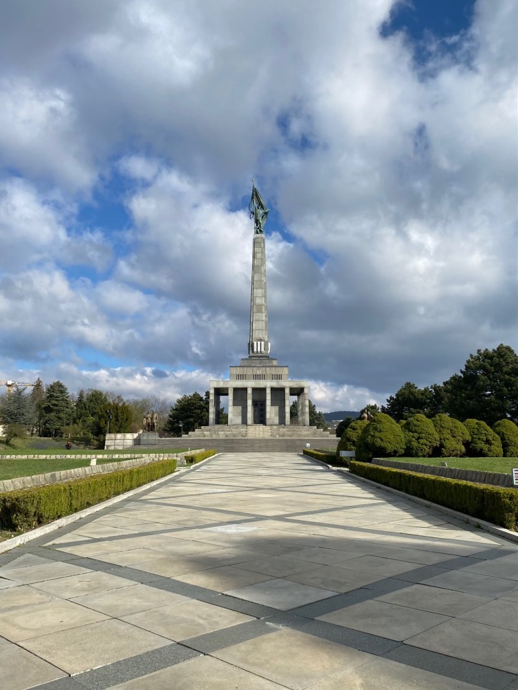 After a refreshing shower, I fell asleep but heartbreakingly had to wake up super early to explore the city in the short time I had. I packed up, grabbed my overstuffed backpack, and headed to Caffe4U for some coffee to get myself awake. The service was great and the prices were unbelievably cheap. I then set off on my solo tour of the city, with my first stop being Slavin Memorial, the World War 2 memorial with a beautiful overlook of the city. On the way, I stopped by the Capitol Building of Bratislava and saw the guards marching around the perimeter. Maybe because it was Slovakia or maybe because it was 8AM on a Monday, but the city was completely empty. I slowly got up the hill to the memorial and was treated to a gorgeous overlook. It was also a very sobering experience to see the sheer number of names of those who passed away during World War 2 and the number of graves in the area.
