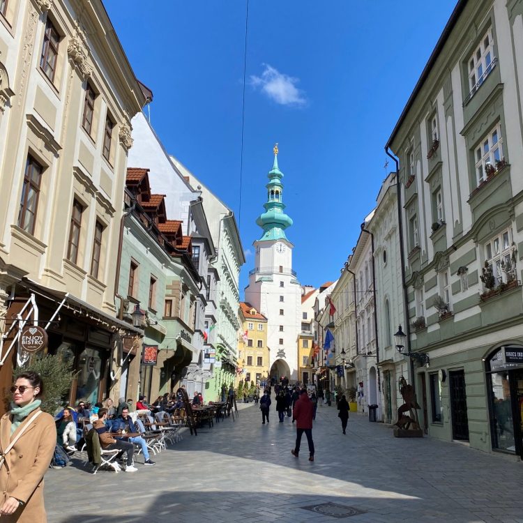 Because Bratislava is a super compact, small city, it was super easy to walk everywhere. The walk from the castle to the old city was 10-15 minutes at most, and I was soon treated to the gorgeous of view of Michael’s Gate. This part of town looked like a standard touristy European city, packed with cafés, restaurants, bars, and tons of old architecture. I stopped by Loclub, a local gastropub to try some locally brewed Slovak beer and some Bryndzové Halušky, a traditional dish made from gnocchi-like potatoes and a soft sheep’s cheese topped with chives and bacon (remember to ask for no bacon if you’re vegetarian!). It was really good and I got to sit on the second floor which was a vibe. Even better, there were outlets next to the tables, which proved to be an absolute lifesaver (again, big shoutout to IMC trading…stick to trading).