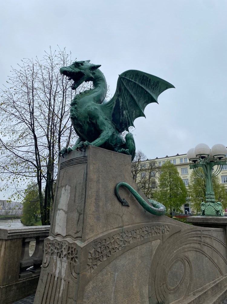 We arrived a bit late, as is expected with Eastern European train travel, but we quickly put our bags away and walked toward Ljubljana Castle. En route, we saw some of the city and walked over the famous Dragon Bridge, which, as the name suggests, has dragon gargoyles at its entrance. Even though it was Friday and the middle of the day, the streets were bustling and the sidewalks were well-populated. Given my experience in other Eastern European cities where the city was more quiet, it was nice to see everyone out and about.