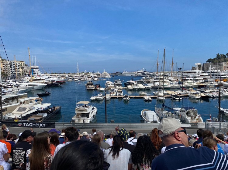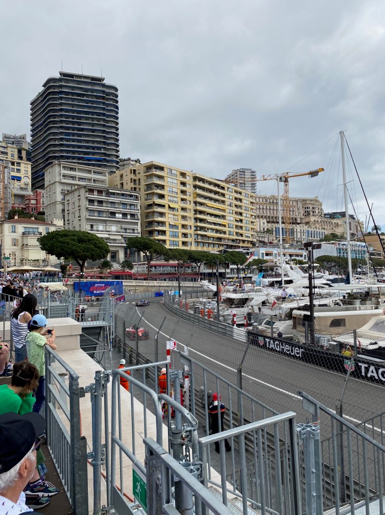 We had done a lot of analysis on where to sit, and I can confidently say that K was the best one. It provided views of a major curve, a long straight section, and the yachts on the water on the other side. The qualifying was super fun to watch and we were able to walk to the first row since there weren’t that many people watching in the morning. It was a time trials-based system followed by head-to-head elimination rounds. Not being a Formula 1 fan, it was a little confusing to watch (I think qualifiers were to determine starting positions in the main race, but not 100% sure). I also found it funny that there were Mariokart-like elements to the race, such as speed boosts that temporarily increase the engine power (since the cars are electric, it’s easy to modify the engine strength).