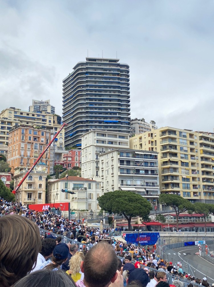 As the crow flies, we were right next to the racetrack, but because of all the barriers and scaffolding, it was another 20-minute walk to get back. At this point, we had walked across the entire country. We hustled back, navigated the train station’s weird floor numbering (floors are negative numbers, but the negative is often omitted?), and settled into our seats just a couple minutes before the race began. The announcer, albeit speaking in French, did the classic announcement of the lineup before counting off the drivers and it was so amazing to be seated in the middle of all the action. The racers began zooming down the tracks, and an underdog, Nick Cassidy, took control of the race. There were several minor wrecks, which led to several safety laps where the pacing car leads all the cars around the wreck and maintains the relative ordering of the racers. To remove the car from the track, a construction crane was used to lift up the car, which proved to be a funny sight to see: a flying car!