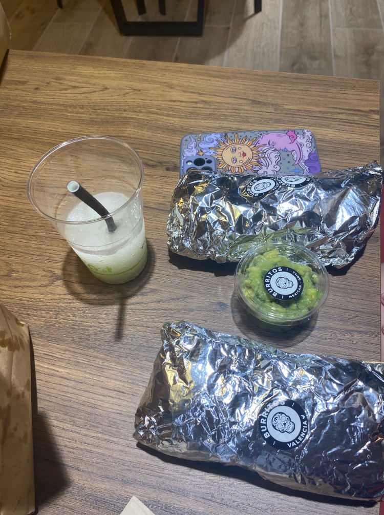 It goes without saying, but the next morning I woke up very, very late. We discussed whether we wanted to go to Ibiza, but both of us had too much work on our plates to handle another trip. Speaking of work, she went to school and I got hard at work on our snow and avalanches project. Side note: she kept her room so well-stocked with my favorite snacks that I had the time of my life downing sleeves of Oreos. For dinner, we went to Poblenou and got burritos at the creatively-named Burritos (on Google as Burritos – Poblenou). It was super delicious, and I ordered in Spanish which made victory taste even sweeter. We picked up some wine before heading back to watch the Sixers-Celtics Game 6 and play some more chess.