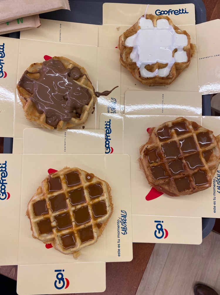 For a change, I did not get up criminally late on Friday because we had places to be. We hopped on a tram and headed to Glòries, an outlet mall with some cool outdoor parts as well. I was starving, so we grabbed a waffle brunch at Goofretti. Next on the agenda was pant shopping, and we tried several places like Mango. Ultimately, it was time to go to ol’ reliable, Zara, for which we had to go outside in the rain. Side note, but it rained almost every day I was in Barcelona. I thought this was supposed to be the land of sunshine and beaches! Even the mall was unprepared for this level of rain and there were several roof leaks in the indoor portion.