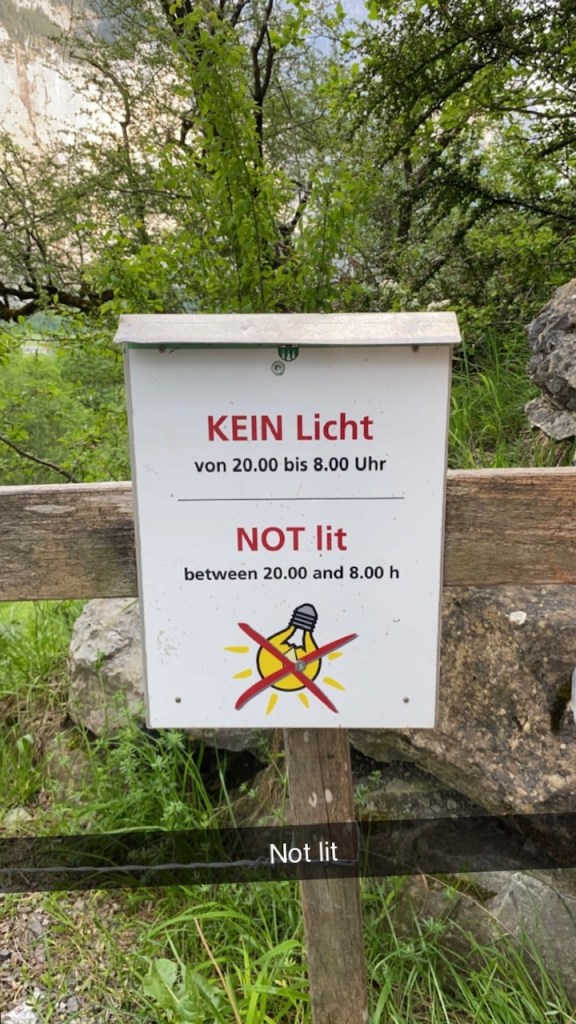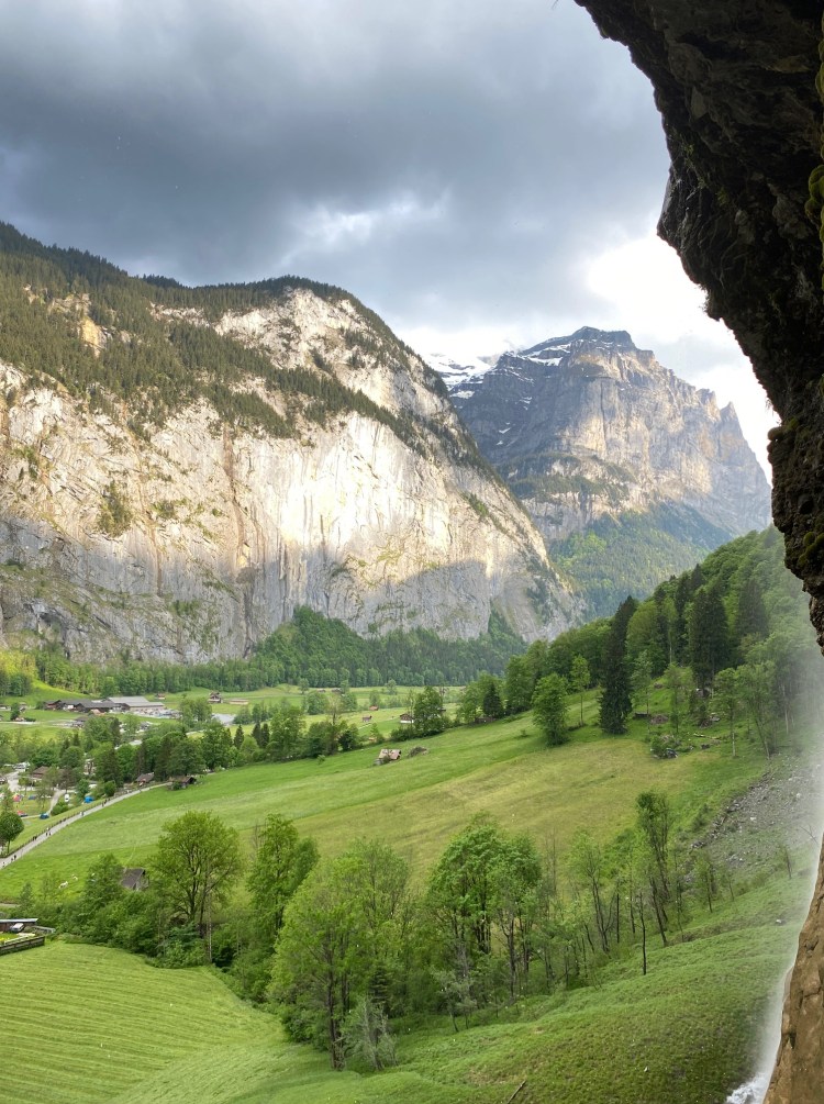 So, we loaded up on gipfeli and food from Rice Up and Co-op before hopping on a train to Interlaken West. We stored our luggage in the station lockers before hopping on another train to Lauterbrunnen. I was excited because I didn’t make it here on my last trip. We got off the train and immediately took a bus to Trummelbach Falls. There are a set of 10 different waterfalls inside a cave, but you do have to get tickets to get in. We took the elevator up to the middle level and decided to walk to the top and back down.