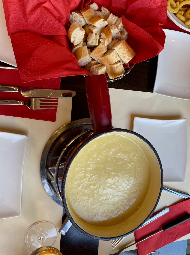 Staubbach Falls was absolutely beautiful, and the whole experience felt like walking through a storybook. It was time to walk back to Lauterbrunnen’s main station and ride a train back to Interlaken. In Interlaken, we had a bit of time to spare and decided to get some traditional dinner at Runft. My dad is a cheese lover, so eating fondue is an absolute must. Unfortunately, dinner was a bit of a logistical mess due to time constraints and a lack of cheese-free vegetarian options (got a veggie omelet for my mom, but they put ham in it!). The fondue was decent, but not in my Swiss top 3 for sure.