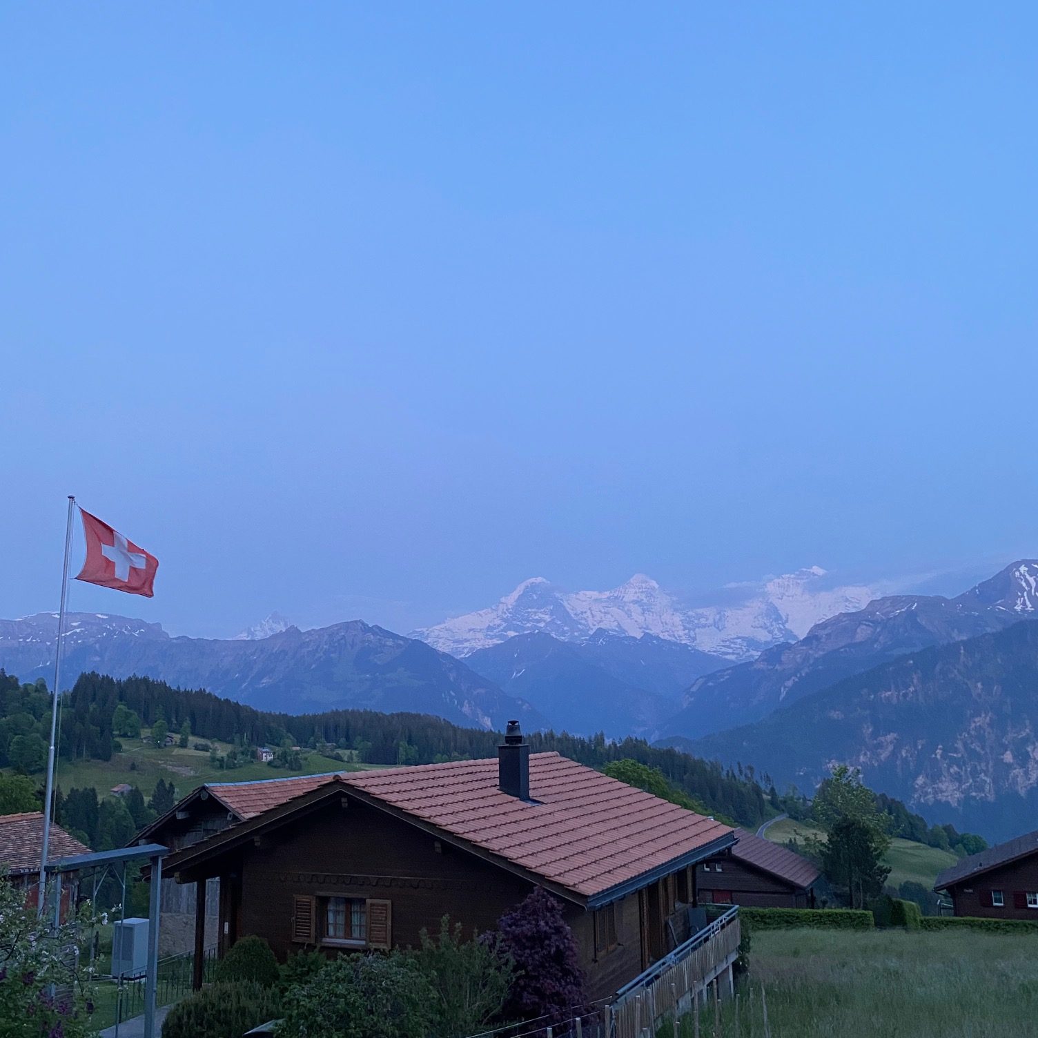 We got to our Airbnb, and it had cozy cabin vibes. The views from the window were UN. MATCHED. I cannot emphasize this enough. We had a perfect view of the major 3 peaks: Eiger, Mönch, and Jungfrau. There was also a beautiful Swiss flag in front of us, and the light of the sunset illuminated the whole landscape perfectly. It was the perfect environment to study (yep, I know, but my final exam was in two days!).