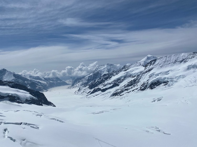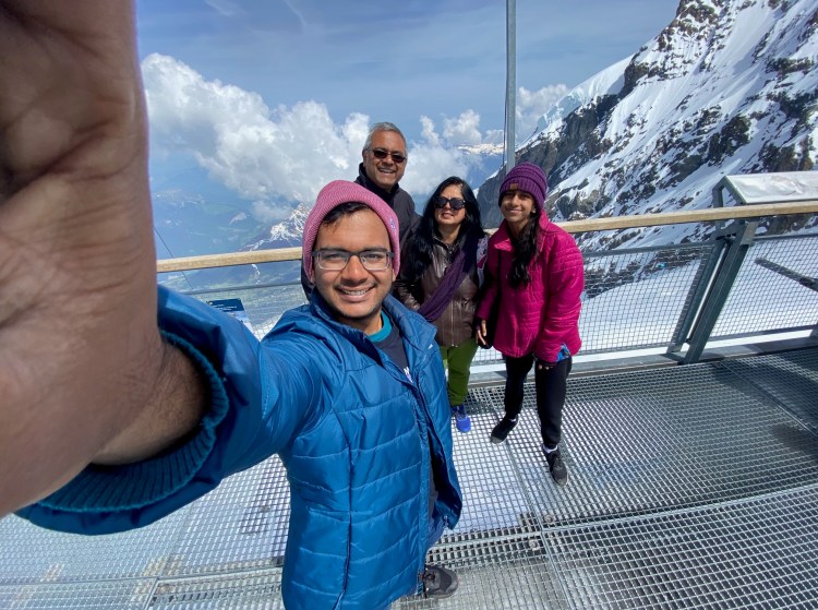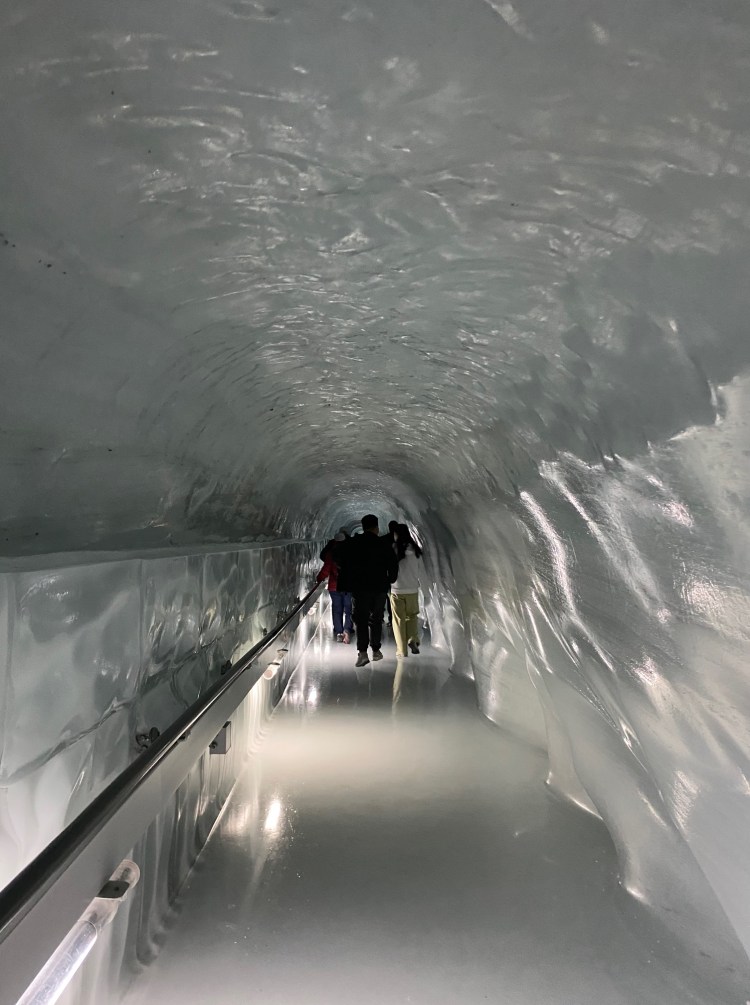 The next morning, we woke up, got on a bus, got on a train, and made our way to Grindelwald terminal. We were about an hour early compared to our timeslot tickets, and they were sticklers about time at first, but eventually let us go 30 minutes early. A scenic cable car brought us to Eigergletscher and another funicular brought us to the very top of the famous mountain: Jungfraujoch! It is famously called the Top of Europe since it is the highest accessible point on the continent. There are plenty of taller mountains, but none that have a connecting train—a pretty amazing feat of engineering. After reaching the top, we walked to the observatory to see the view from the tip-top. Turns out, the observatory is also a place of science, and the site of several experiments for atmospheric science. The views were incredible, and it’s unreal that they managed to build a railway up there. The snow-covered landscape looks like something out of a TV show, and it is! It’s a famous spot from the K-drama, Crash Landing on You. As a result, there were a ton of Koreans (and Indians, because it was near the end of the Indian summer break). We took a lot of pictures, and I tried my hand at the panorama trick, where I would move behind the camera to appear multiple times in a single panorama. It was truly beautiful and honestly crazy to realize the extremes that exist on Earth, from volcanoes to these mountains.