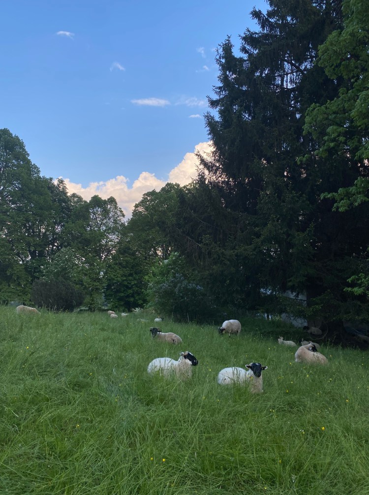 It was time for a quick study break with the backdrop of the mountain we just visited the top of. The quiet, calm town of Beatenberg was so peaceful compared to the hustle and bustle of Jungfrau and Interlaken. We decided to take a walk around the town and take in the beautiful views from the overlook of the lake. There were even some sheep who were also enjoying the breezy evening. Beatenberg is the type of place where I would want to retire.