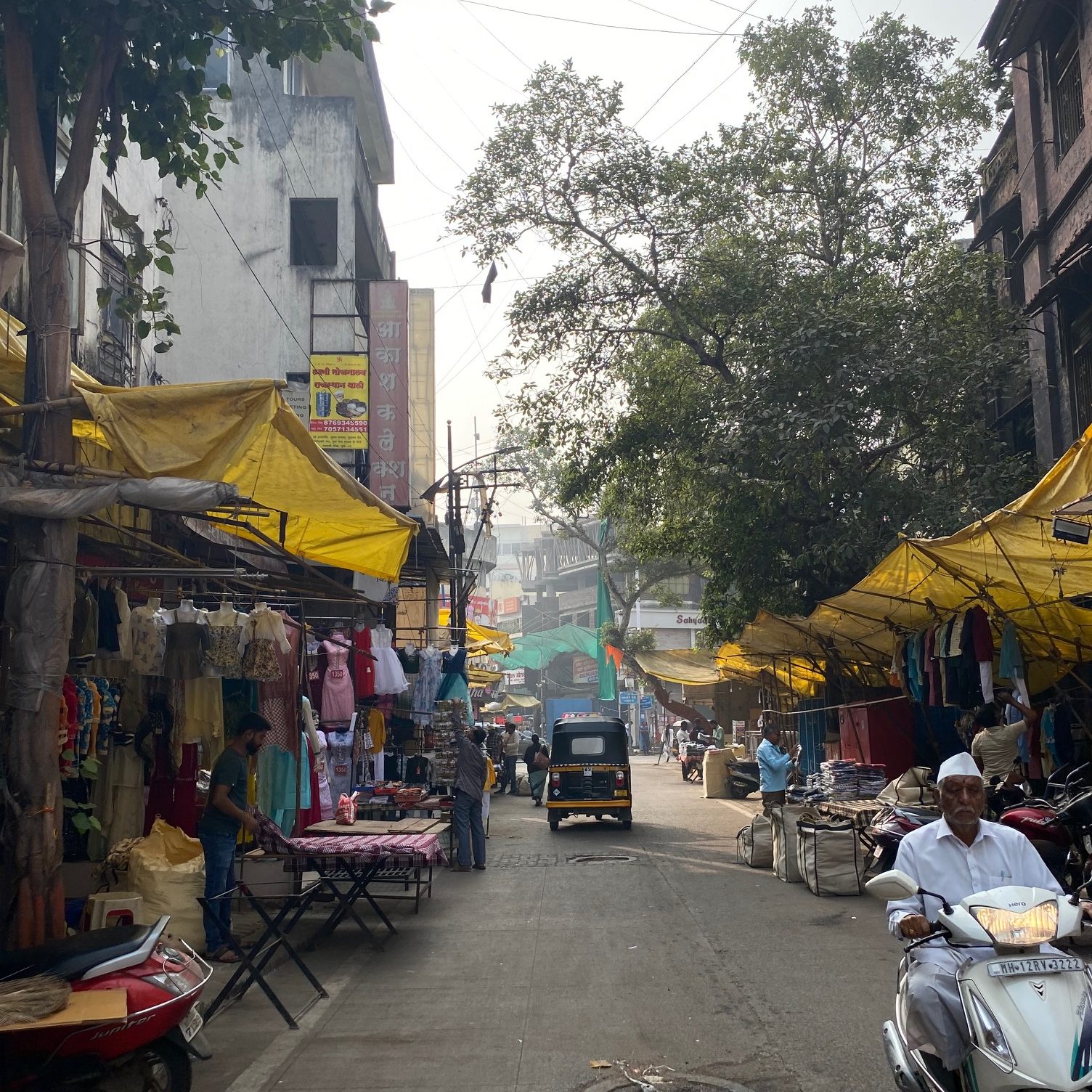 To recover the calories burned by our “hike”, my Kaki and Kaka got us Pune Misal. There, they just call it misal! The misal was delicious and gave me enough energy to walk around the neighborhood, visit some grocers, and check out the terrace of my Kaki/Kaka’s other flat. The view of the tree-speckled suburb was beautiful from the top, but the pollution made it hard to see into the distance. On the flip side, the haze accentuated the bright lights and gave a unique vibe to the city that I can’t really put into words.