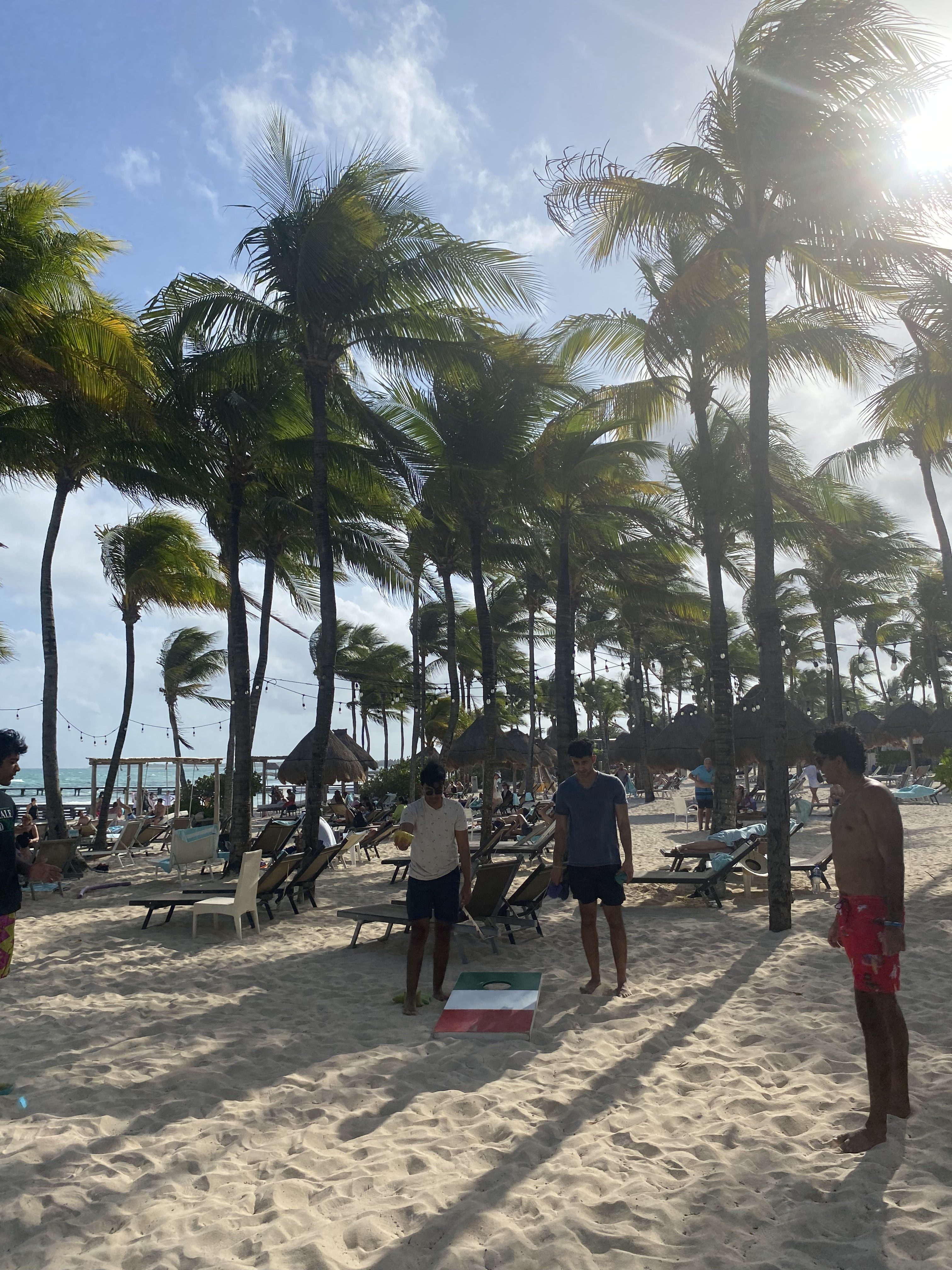 We woke up late the next morning and headed to Waves and Tacos (another resort restaurant) for brunch. The food the night before was pretty solid, so we had high expectations. Unfortunately, this place did not meet those standards. We wanted to hit the gym, but we were turned away after not bringing closed-toe shoes. Instead of accepting defeat, we took the 30-minute journey back to our room (walking + golf carts) to pick up our shoes to workout. The vibes were off, but they were revived with a bit of post-gym cornhole. Our competitive spirit combined with our gambling addiction (kidding!) made the game exhilarating. I also discovered my latent talent for cornhole and was the league’s MVP for the day. We wrapped up the afternoon by playing pool volleyball with other guests in the resort. As a note, there weren’t really any college kids at Grand Mayan and the younger crowd was around 30. It was still a vibe, but we decided to spend all our nights outside the resort because of that,