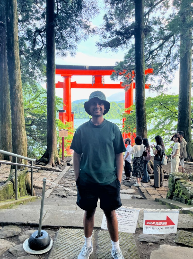 Next, I took a cable car down to Lake Ashi and waited to buy tickets for a lake cruise. The boat looked exactly like a pirate ship and it was a unique experience to ride on the calm, blue lake surrounded by lush greenery. On clear days, you can supposedly see Mount Fuji, but it was way too cloudy for that. After an intermediate stop, we arrived at Motohakone, which was within walking distance of the famous Hakone Shrine. The path near the shrine was littered with Torii gates, and the shrine itself was much calmer than the shrines in Tokyo. What was NOT calm, though, was the floating Torii gate that was in the water next to the shrine. There was a line of 30+ people waiting to take their Instagram pictures, so I just took pictures from a distance and moved on. After a quick walk back to the boat station, I caught a bus to Hakone-Yumoto (which took some planning to make sure the buses were still running and I took the correct bus back).