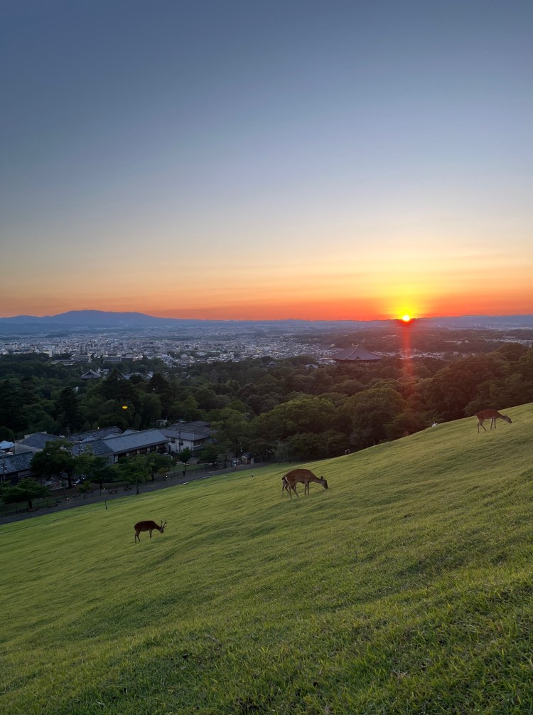 After visiting some local shops for knick-knacks and refreshment, I decided to go back to Wakasuka Hill and catch the sunset. Until that moment, I had taken a lot of care to follow the norms and regulations of regulations of Japan’s rule-focused society. But, once I saw some people scoot past the turnstile to get on the hill, I followed in their footsteps. I climbed up the hill and found a nice spot at the top to capture the deer, sunset, and the Nara skyline in a single scene. A couple was sitting next to me taking their wedding pictures, and even asked me to take pictures of them. I was so honored, and I hope they liked the results. As a side note, I found that carrying a camera around increased the likelihood of being asked to take pictures of people.