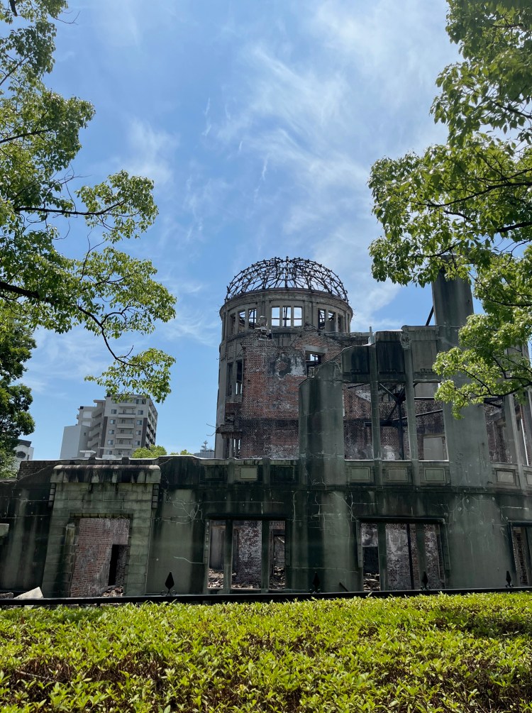 The A-bomb dome is a metallic frame of a dome atop the Hiroshima Prefectural Industrial Promotion Hall. It is the only structure that survived the atom bomb from extremely close range. Being there in-person really puts things into perspective; everything that you can see was completely flattened and turned to ash just 80 years ago. Now, it’s a beautiful park on the banks of a bustling city.